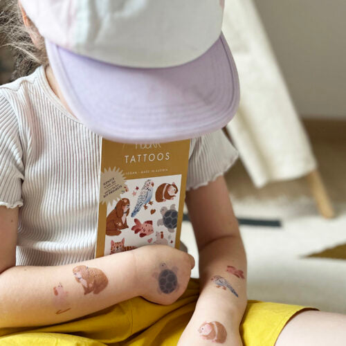 Organic children's stick-on tattoos – skin-friendly, vegan, and easily removable. Featuring lovingly designed motifs for creative play.